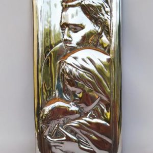 Sagrada Familia rectangular con colgadera. Medida: 14.5 cms de ancho x 18 cms de alto.